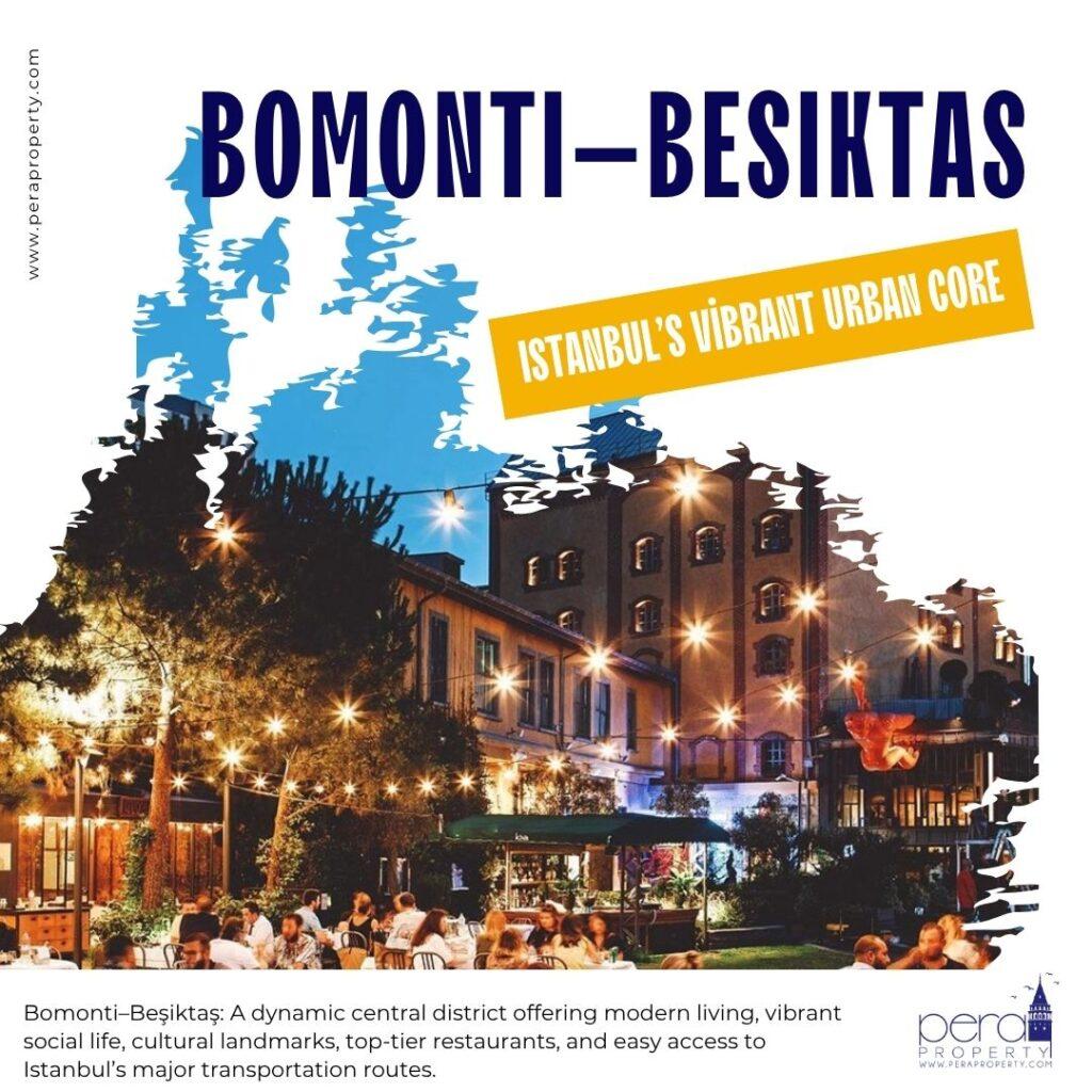 Nestled between Taksim and Sisli, Bomonti is an area that is now in huge demand from the Turkish middle and upper classes. Just 5-10 minutes away from Taksim Square, Besiktas, Kağıthane, and the E5, it’s also close to the city’s landmarks as it is just 5 minutes away from Dolmabahce Palace, 10 min away from Bosphorous bridge, 10 minutes away from the Golden horn, and 20 minutes away from Sultanahmet’s Blue Mosque and Hagia Sophia, without forgetting that it is already home to luxury skyscrapers, world-class hotels, international hospitals, and several private schools most notably the world famous French schools.