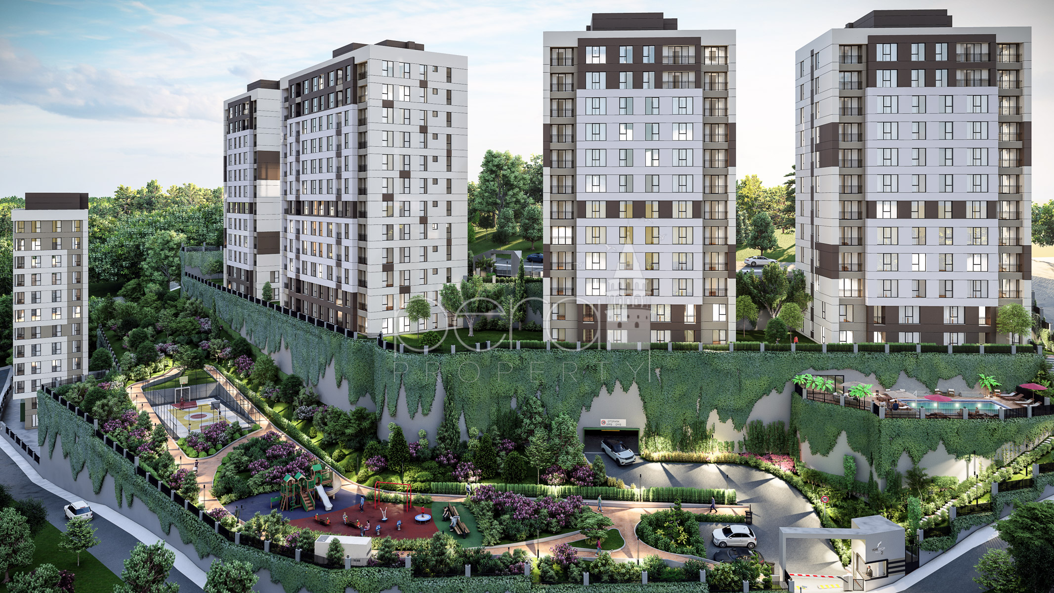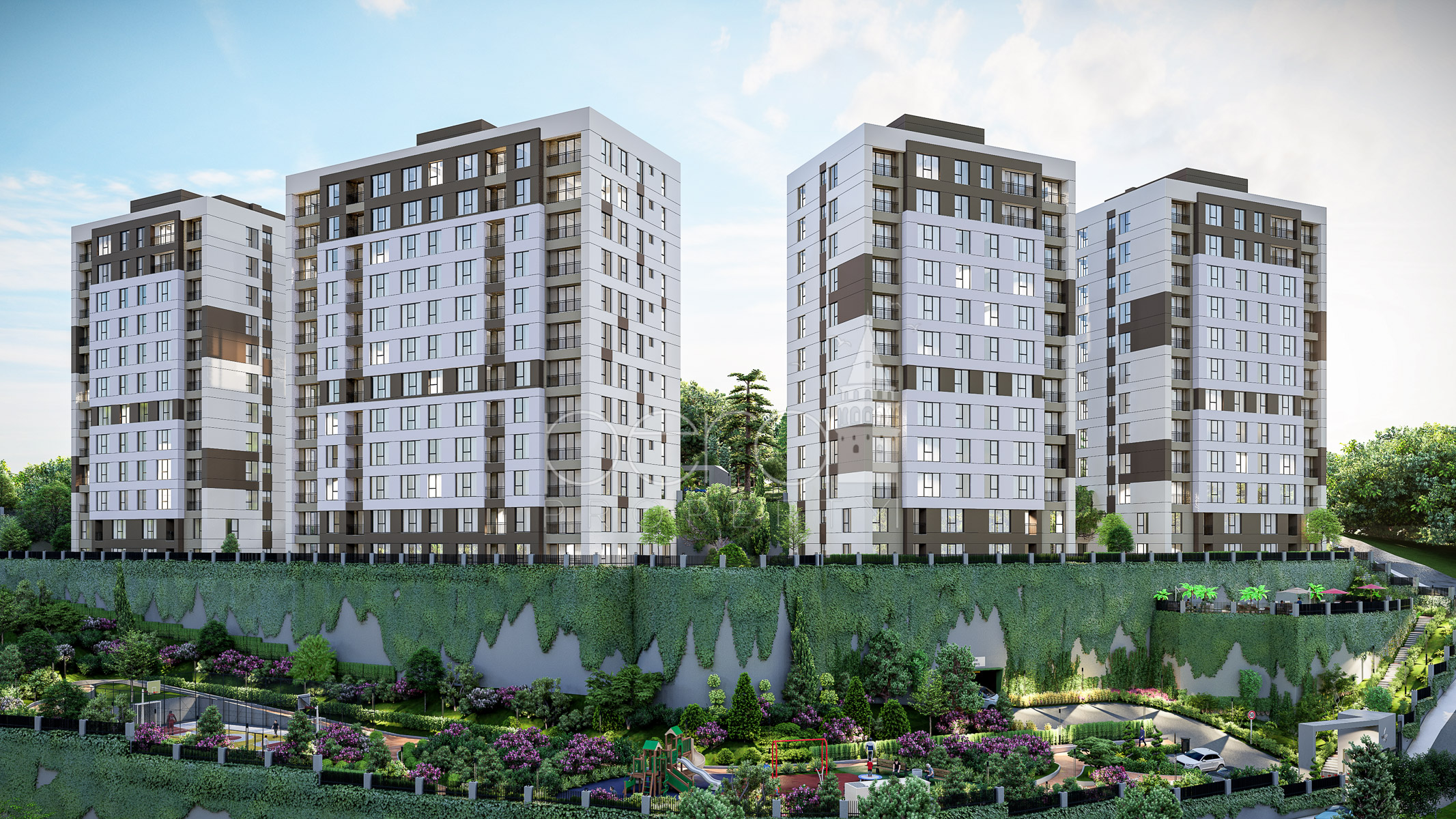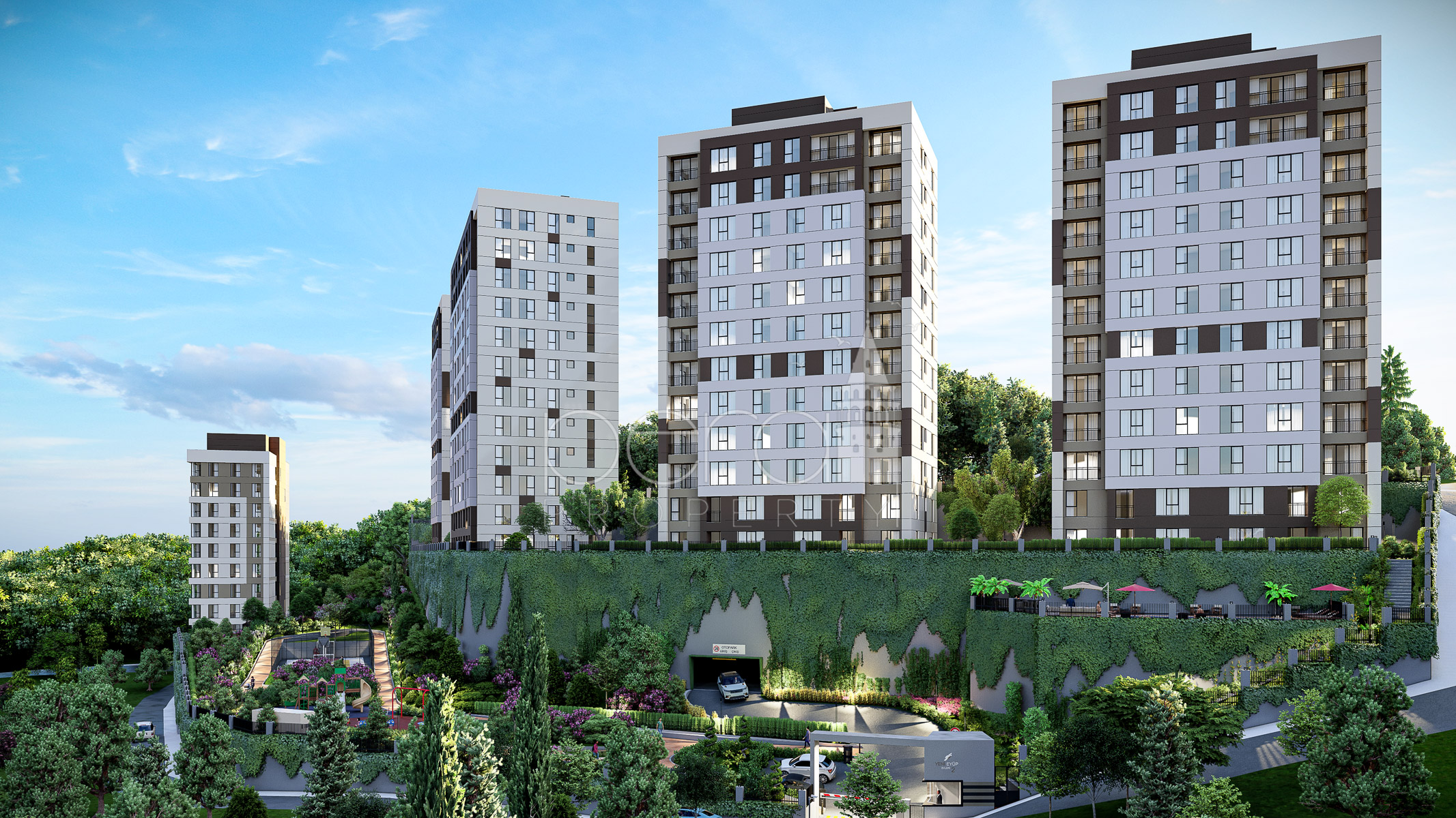 Residential apartments in a compound for sale in Eyup Istanbul, just a few minutes walk from the new city centre metro.